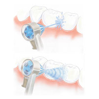 Безліч мікропухирців, які утворюються у водяному потоці при нагнітанні в ньому повітря, м'яко та ефективно вимивають наліт і залишки їжі. Завдяки мікропузирьковій технології іригатор виконує не тільки дуже ретельну чистку простору між зубами, а й масажує ясен.